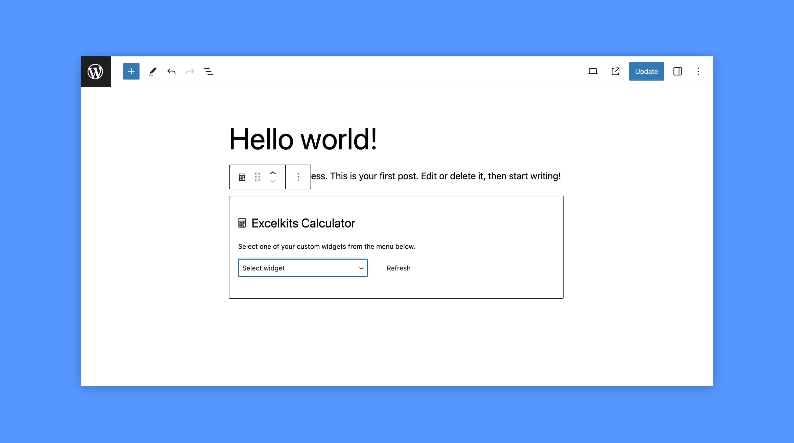 Simple, first you sign up for Excelkits and select a starter template. Upload your own spreadsheet and customize the results. When you are ready, create your Excelkits API Key then add it to your WordPress Excelkits settings menu in the admin. You should then see your custom widget selectable within the Gutenberg editor’s calculator block.